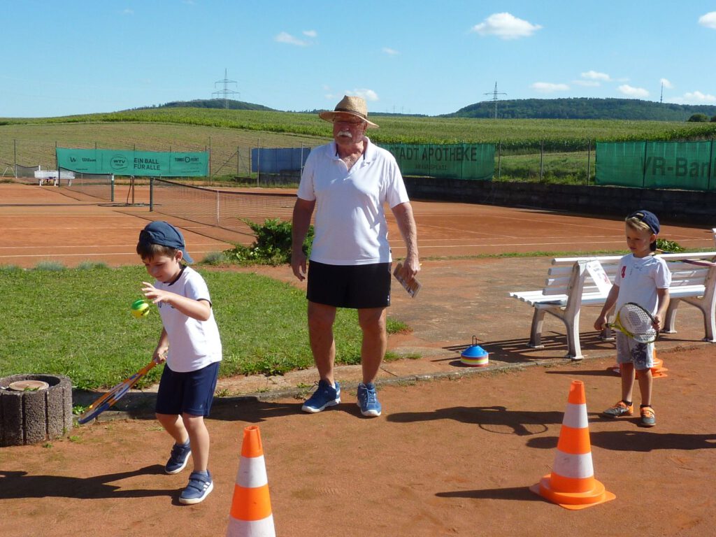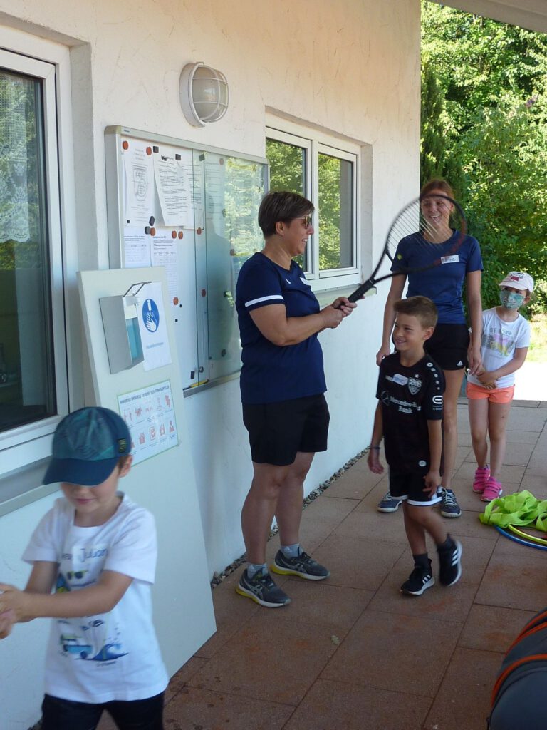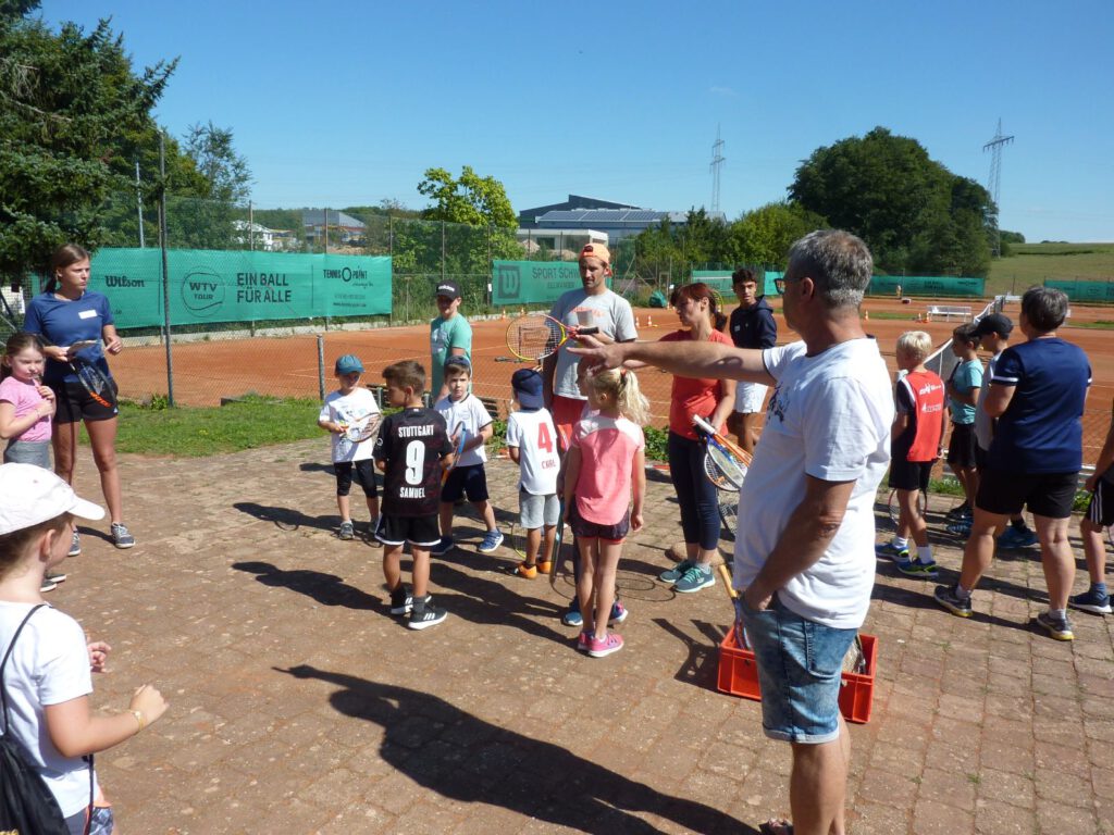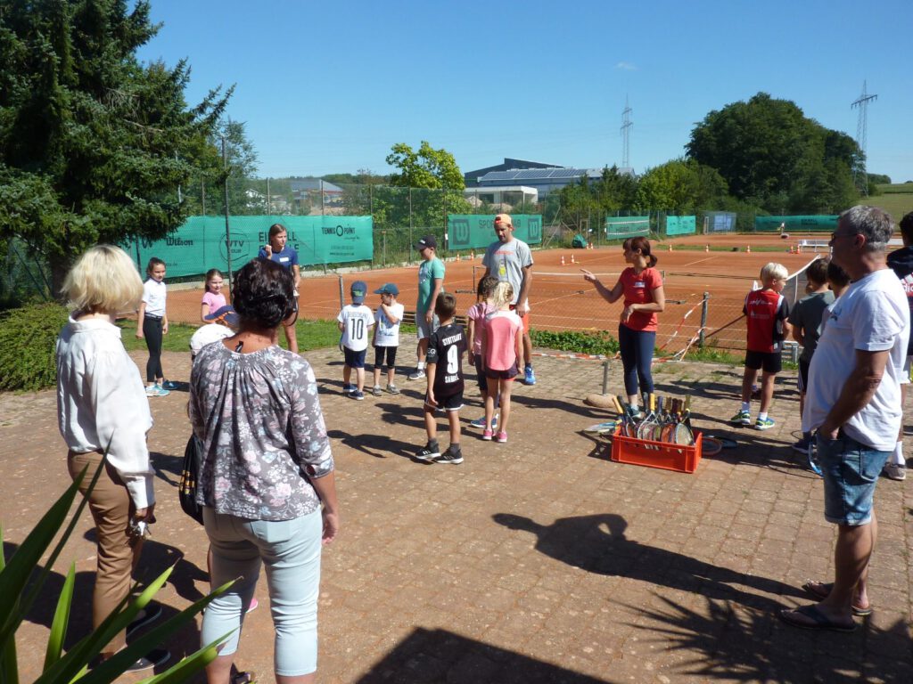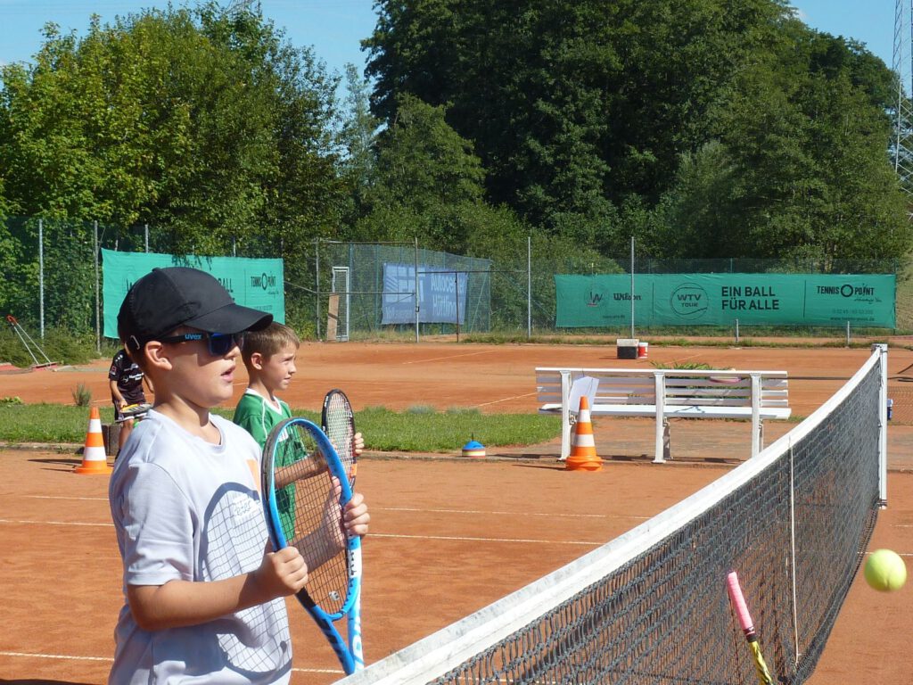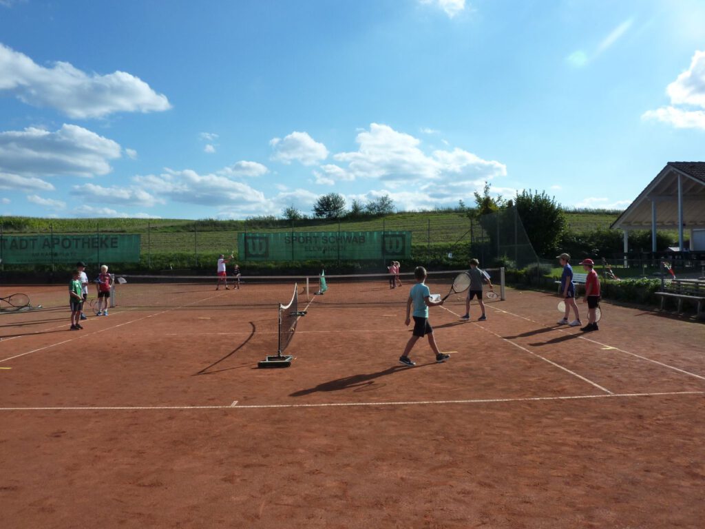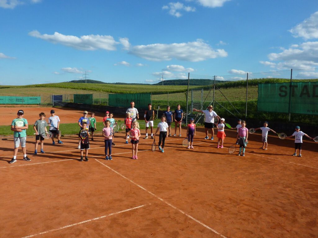 Diesmal hat es geklappt mit der Ferienaktion der Tennisabteilung. Nachdem der erste Termin am Anfang der Sommerferien dem schlechten Wetter zum Opfer viel, strahlte diesesmal die Sonne vom Himmel. Ideales Wetter um den 18 neugierigen Tennisspielern ein tolles Einsteigerprogramm zu bieten. Alle waren mit Begeisterung 3 Std. voll dabei. Bleibt zu hoffen, dass das Interesse bei einigen Nachwuchsspielern geweckt wurde und sie auch weiterhin der gelben Kugel nachjagen.